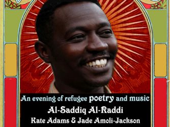 Preview featuring the Ugandan poet, Jade Amoli-Jackson, Sudanese poet Osama Ahmadani, Kate Adams and Kurdish folk music from Zewa and Heval...