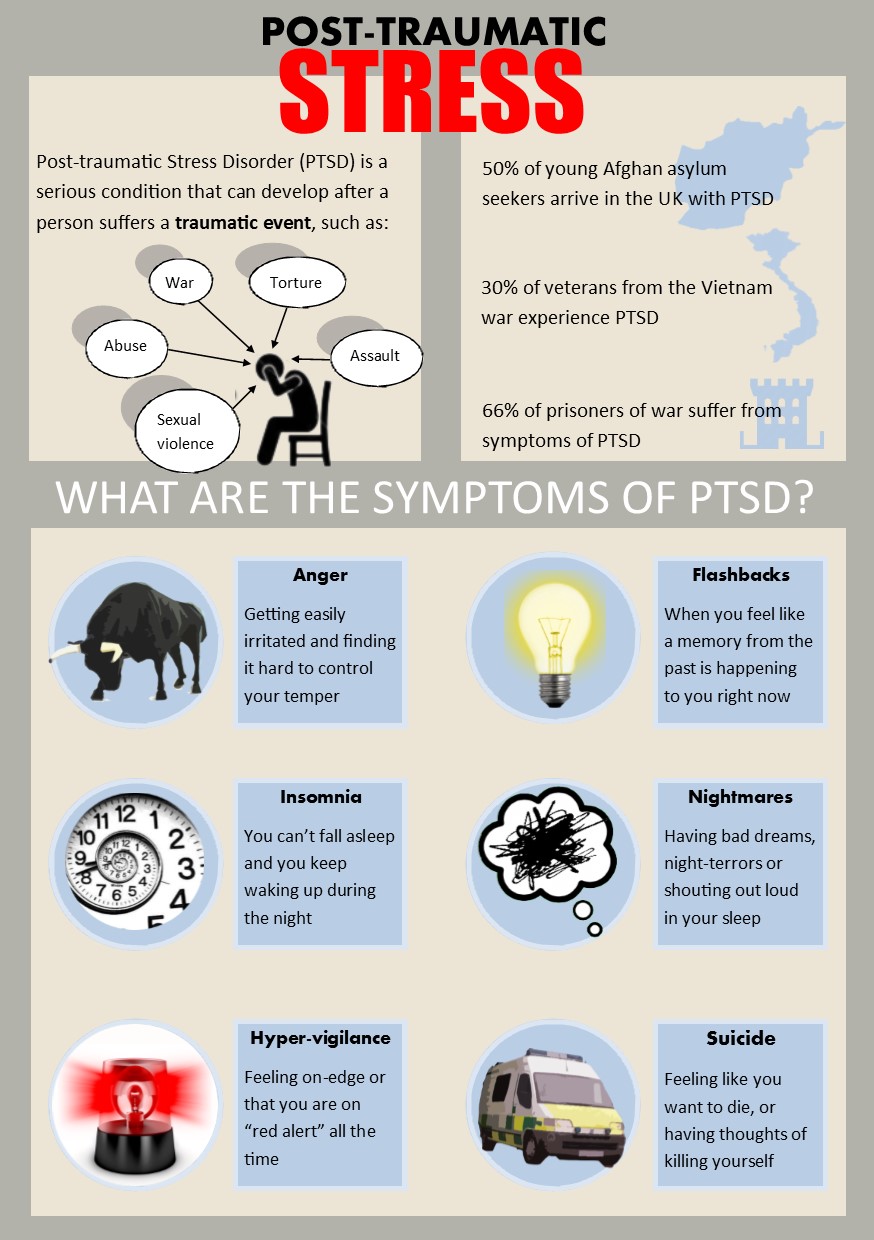 - Therefore any patient from a refugee-producing country who presents to a GP with any mental health issue or any visible injuries/scarring should be screened for PTSD. This is compatible with NICE guidelines [CG26].
